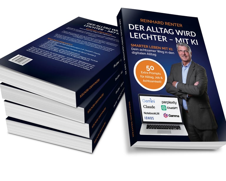 Mein Buch „Der Alltag wird leichter – mit KI“ ist wie ein persönlicher Guide, der dich sicher und gelassen durch das Zeitalter der Künstlichen Intelligenz führt. Du lernst, digitale Werkzeuge so einzusetzen, dass sie dir wirklich dienen – ohne dich zu überfordern. Du entdeckst, wie Achtsamkeit und moderne Technik Hand in Hand gehen können, um dir Zeit, Energie und Klarheit zu schenken. Statt dich von der Geschwindigkeit des Wandels treiben zu lassen, bestimmst du selbst das Tempo. Du gewinnst Sicherheit, Orientierung und die Fähigkeit, Chancen zu nutzen – in Beruf und Alltag. Starte jetzt deinen Weg zu einem souveränen, achtsamen Umgang mit KI.